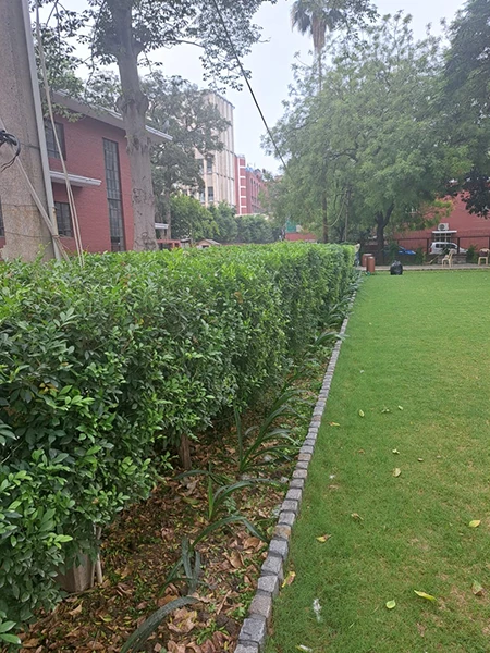 A verdant haven of pomegranate and Exora trees fosters a thriving, natural ecosystem.